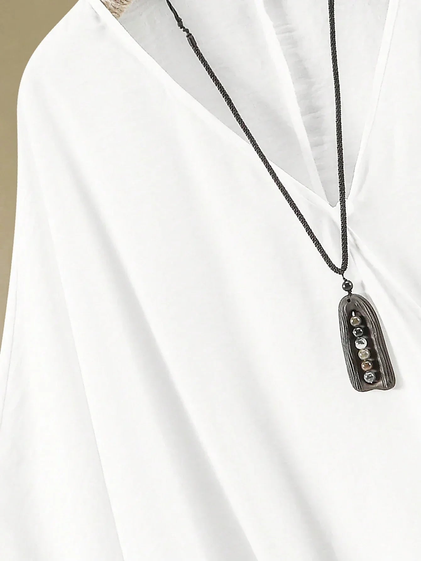 ✓ Draped Boho Top: Flowing V-neck blouse with an artful twist detail that flatters all body shapes while adding a breezy, romantic touch.